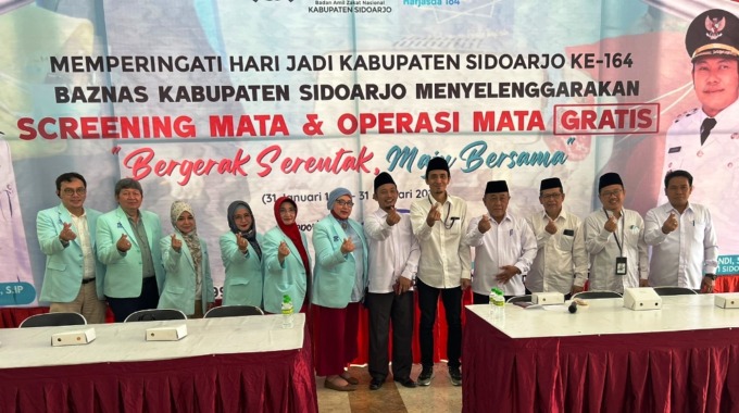 SIDOARJO – Badan Amil Zakat Nasional (Baznas) Sidoarjo bekerjsama dengan RS Mata FATMA menggelar screening mata gratis di Pendapa Delta Wibawa, Rabu (25/1). Ada sebanyak 250 warga Kota Delta memeriksakan matanya untuk diikutkan operasi mata gratis.