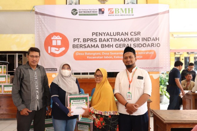 SIDOARJO – Lembaga Amil Zakat Nasional (Laznas) Baitul Maal Hidayatullah (BMH) Gerai Sidoarjo bersinergi dengan Bank Pembiayaan Rakyat Syariah (BPRS) Baktimakmur Indah menggelar santunan program Corporate Sosial Responsibility (CSR). Kegiatan tersebut berupa pemberian paket sembako berkah untuk warga duafa di wilayah Surabaya, Sidoarjo dan Mojokerto.