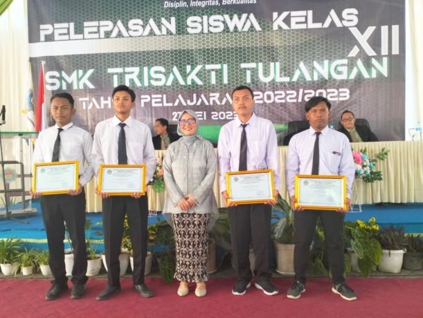 SIDOARJO – SMK Trisakti Tulangan menggelar acara wisuda bagi para siswa yang telah menyelesaikan pendidikan mereka, Sabtu (27/5). Kepala SMK Trisakti Tulangan Sulis Setiawati menyampaikan kebanggaannya atas kesuksesan para siswa. Menurut dia, ada peran penting orangtua dalam pencapaian tersebut. Keberhasilan siswa juga tidak terlepas dari dukungan guru dan karyawan SMK Trisakti Tulangan.